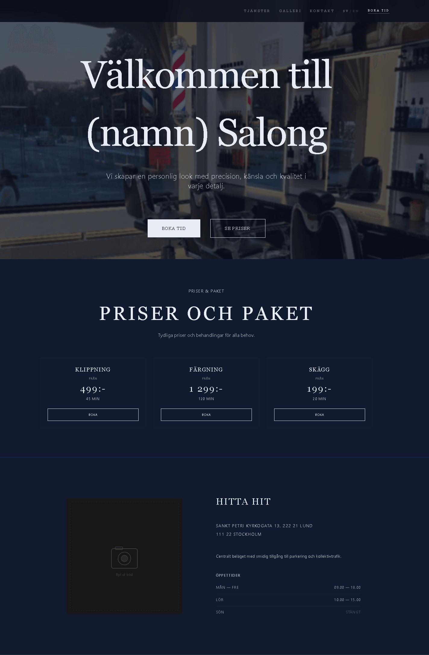 Hanteringen av din verksamhet har aldrig varit enklare. Vår admin-dashboard samlar allt du behöver för att driva företaget effektivt från en och samma punkt. Hantera personalens scheman, se statistik över bokningsgrad och uppdatera era tjänster i realtid – allt med ett gränssnitt optimerat för snabbhet och ordning.